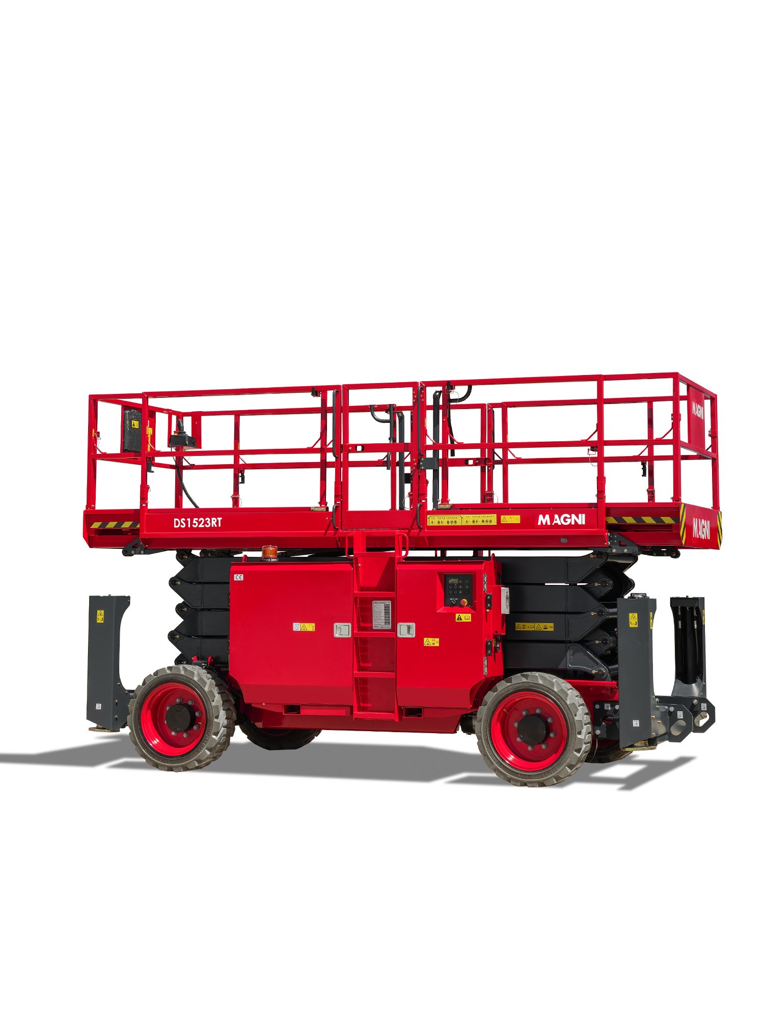 Diese geländegängige Scherenbühne bietet ausgezeichnete Hubgeschwindigkeiten sowie Geländegängigkeit. Sie ist serienmäßig mit Allradantrieb und Non-Marking-Reifen. Ein automatischer Niveauausgleich sorgt für zusätzliche Sicherheit bei Arbeiten in der Höhe.
